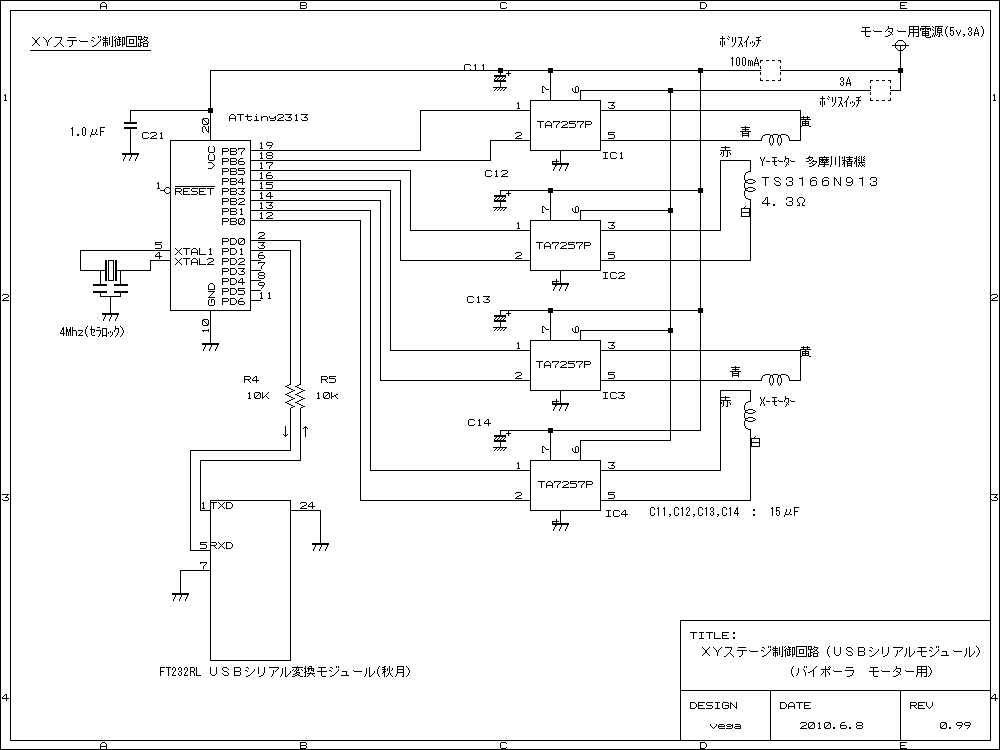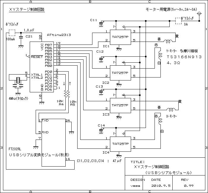 USB対応XYステージ制御用基板(その2) 2010.5.30
