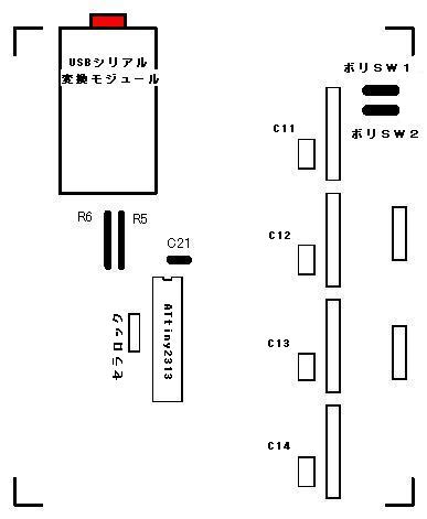 A 製作を段階的に行う場合は、マイコンとセラロックC21のコンデンサを実装し、外部から5Vを供給すれば、
